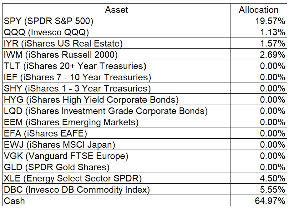 For the methods I use to select individual US stocks, conditions are still not satisfactory for me to purchase them. As such, I hold no individual US stocks and am following the asset allocations recommended by my models.