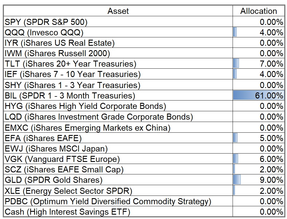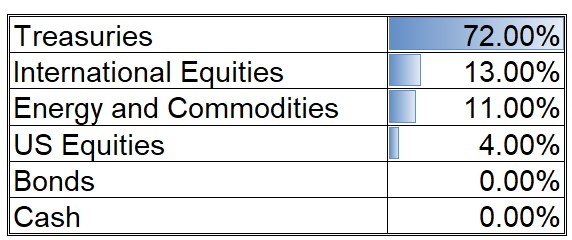 U.S. Treasuries continue to dominate my asset allocations with a current 72% weighting.