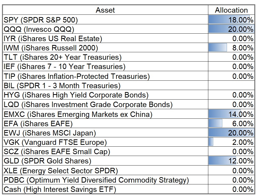 My model has switched strategies and, consequently, there is a very significant change in the ETF allocations this week. My portfolio swung from only 10% equities to now having 100% equities.