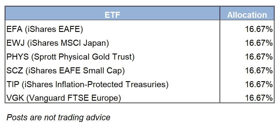 The allocations remain largely the same with the only change being TIP replacing PDBC.